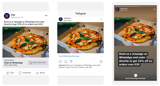 Click-to-WhatsApp ads are also a thing on social media. Restaurants can use it effectively to draw customers' attention and of course, orders!